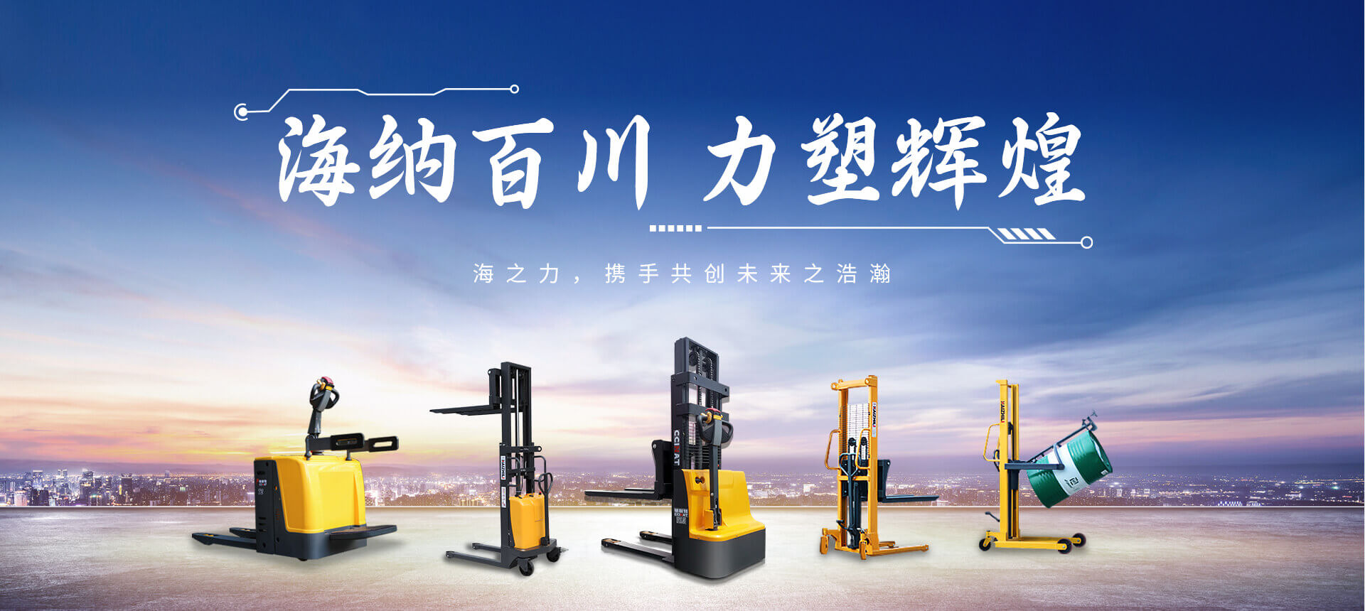 海之力致力于向市場提供高效的物料搬運系統解決方案,包括全系列的手動、電動叉車、平衡重式叉車、移動升降平臺、升降貨梯、汽車尾板等50余款產品。。